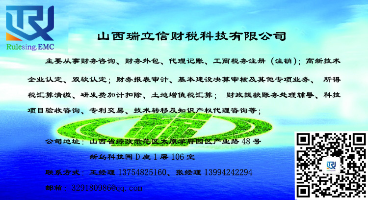 山西瑞立信財(cái)稅科技有限公司是以會計(jì)師事務(wù)所、稅務(wù)師事務(wù)所及知識產(chǎn)權(quán)代理公司等專業(yè)服務(wù)機(jī)構(gòu)作為依托背景,擁有多名注冊會計(jì)師、注冊稅務(wù)師、會計(jì)師、助理會計(jì)師等專業(yè)的財(cái)稅人員,擁有可靠而廣泛的社會資源,能保證客戶享受到安全、放心、可靠、完善的財(cái)稅服務(wù)。